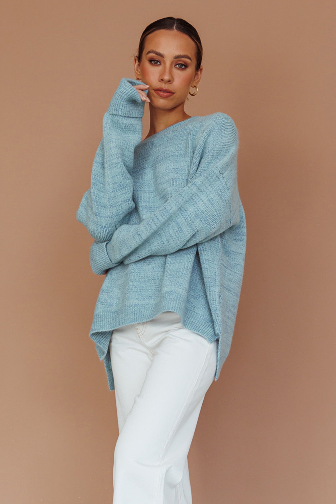 Kayce Dropped Shoulder Knit Sweater Sky Blue